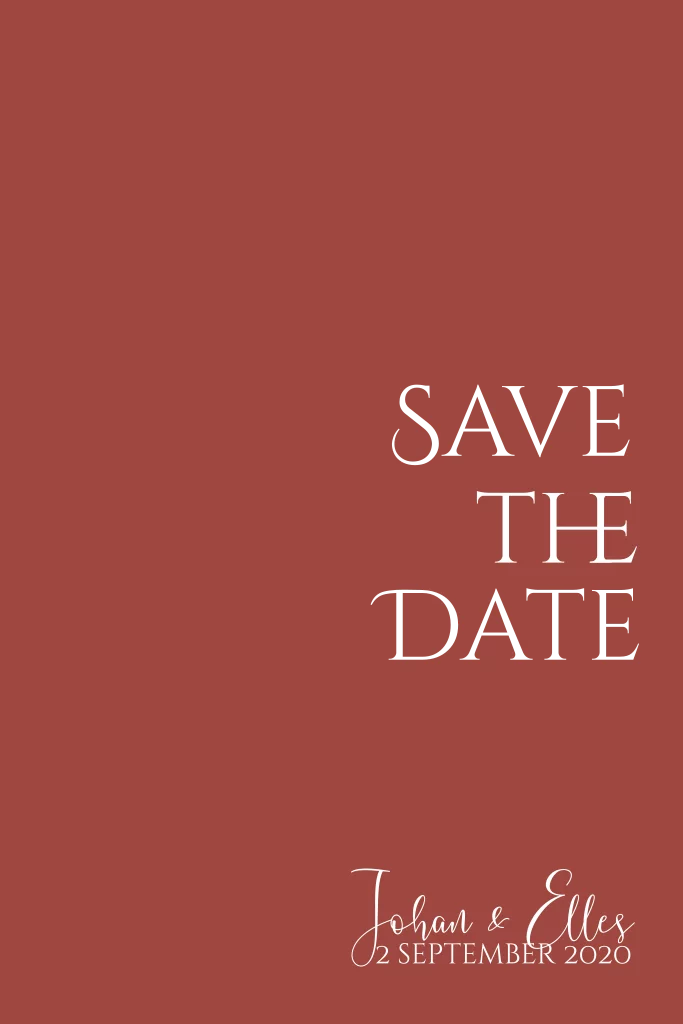 Minimalistische save the date met goudfolie en een achtergrondkleur. Leuk met een mooie foto van jullie die je bevestigt met een paperclip.