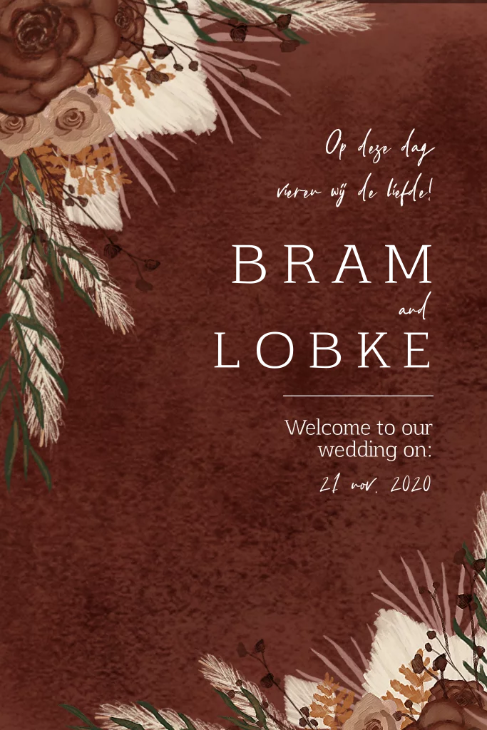Chique trouwkaart met bloemen droogbloemen