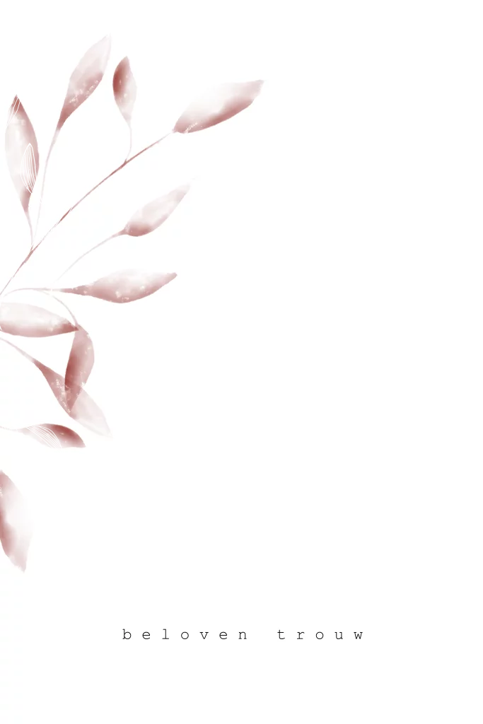 Mooie trouwkaart met roze takjes en goudfolie. Op de achterkant vind je een dagplanning. Wijzig het kaartje door te kiezen voor een andere kleur folie of een ander lettertype.