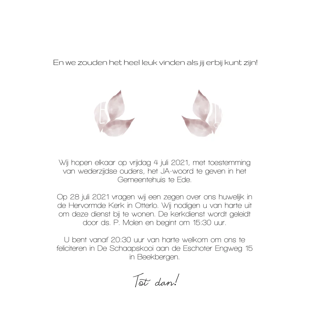 Minimalistisch en sierlijke trouwkaart met takjes en namen in goudfolie. Wil je dit trouwkaartje net even anders maken? Voeg dan een achtergrondkleur of een andere kleur foliedruk toe!