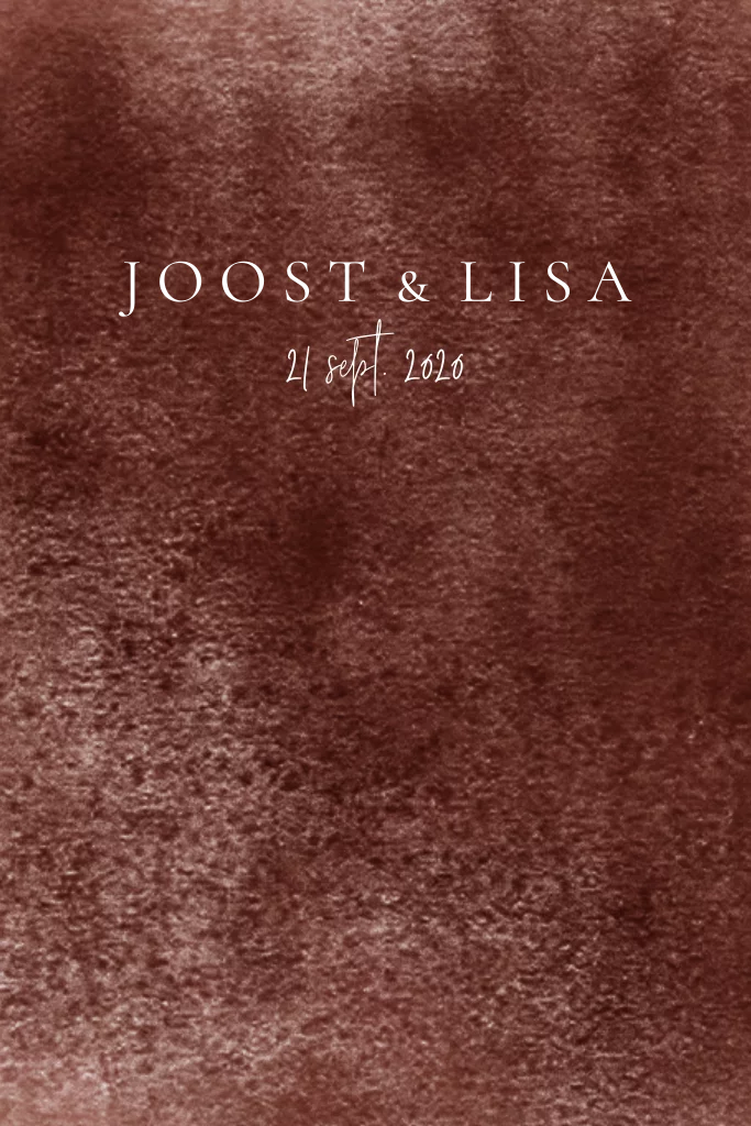Mooie trouwkaart met velours achtergrond in roest en goudfolie namen.