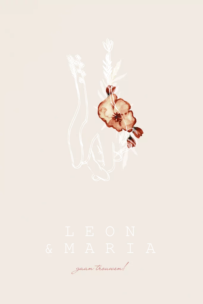 Chique trouwkaartje met namen in folie. Daarboven twee handen die elkaar vasthouden als teken van de liefde! Jullie gaan samen verder door het leven, wat is er mooier dan dit te laten zien door dit kaartje?