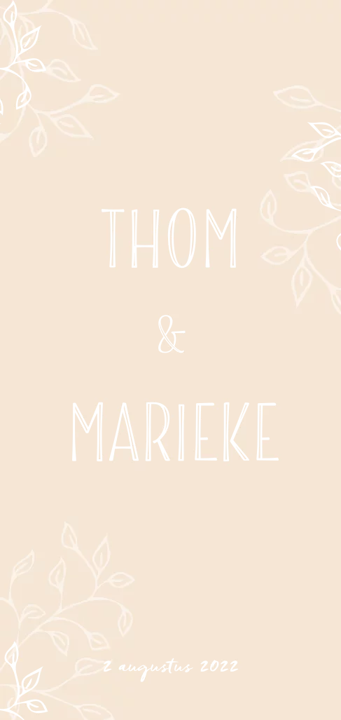 Trouwkaartje met een zandkleur achtergrond, takjes en tekst in folie! Pas de achtergrondkleur naar wens aan!