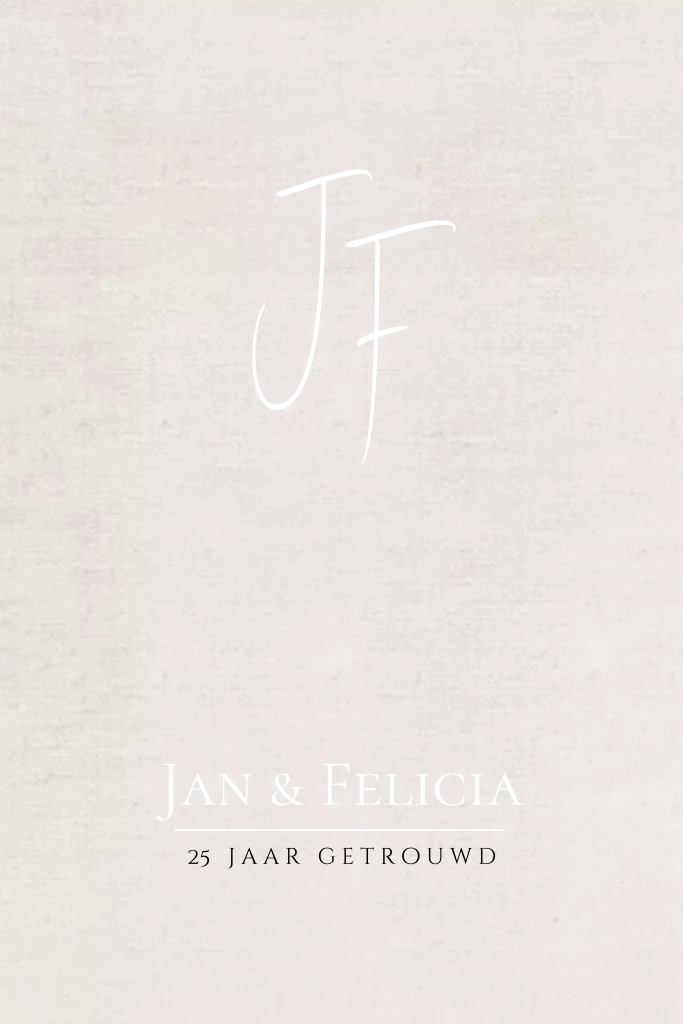 Chique minimalistische jubileum trouwkaart 25 jaar met sierlijk en strak lettertype en een structuur achtergrond.