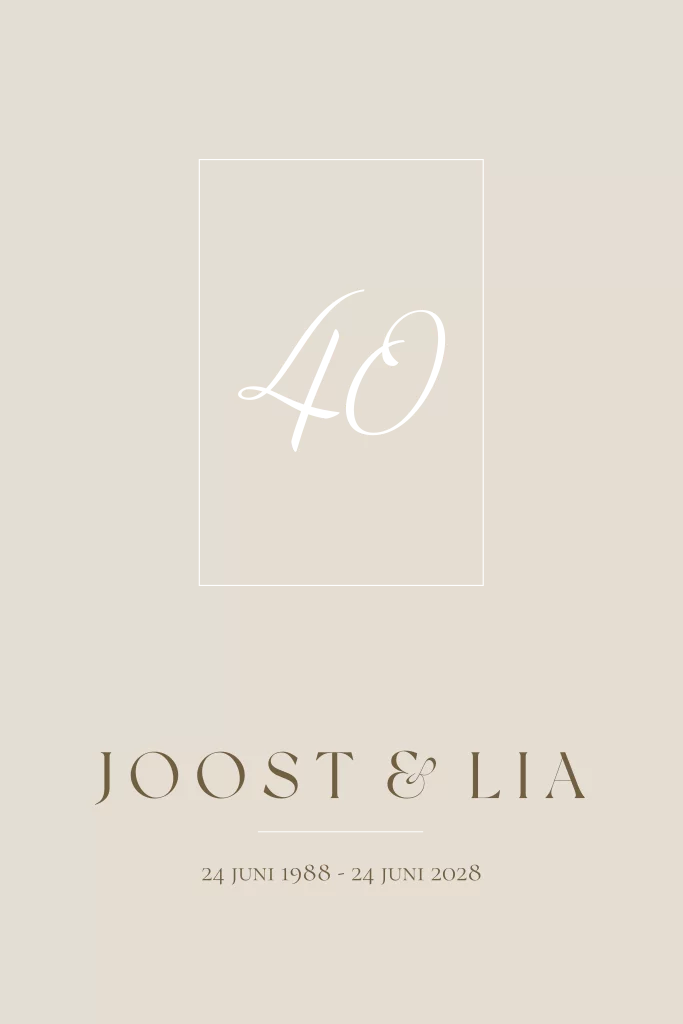 Jubileumkaart 40 jaar getrouwd met goudfolie en zandkleur achtergrond. Pas deze kaart naar wens aan!