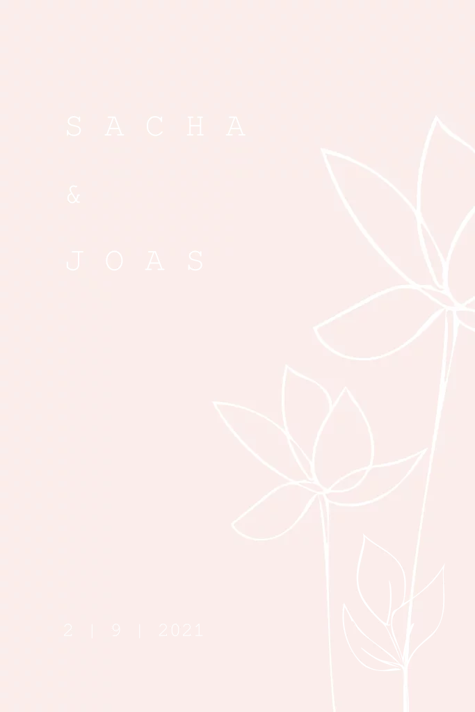 Minimalistisch trouwkaartje met lijntekening van bloem