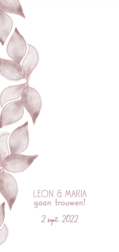 Roze met witte save the date met tekst in goudfolie