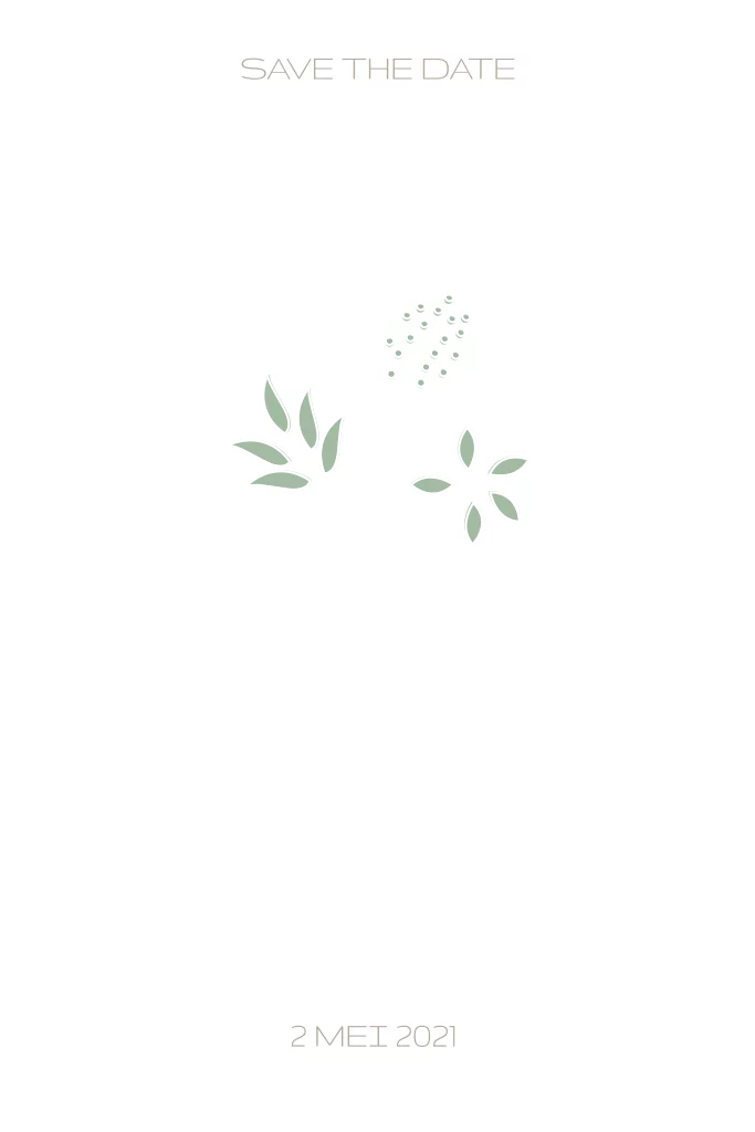 Save the date met een getekend bosje bloemen en goudfolie. Leuk met de bijpassende trouwkaart in eucalyptusgroen!