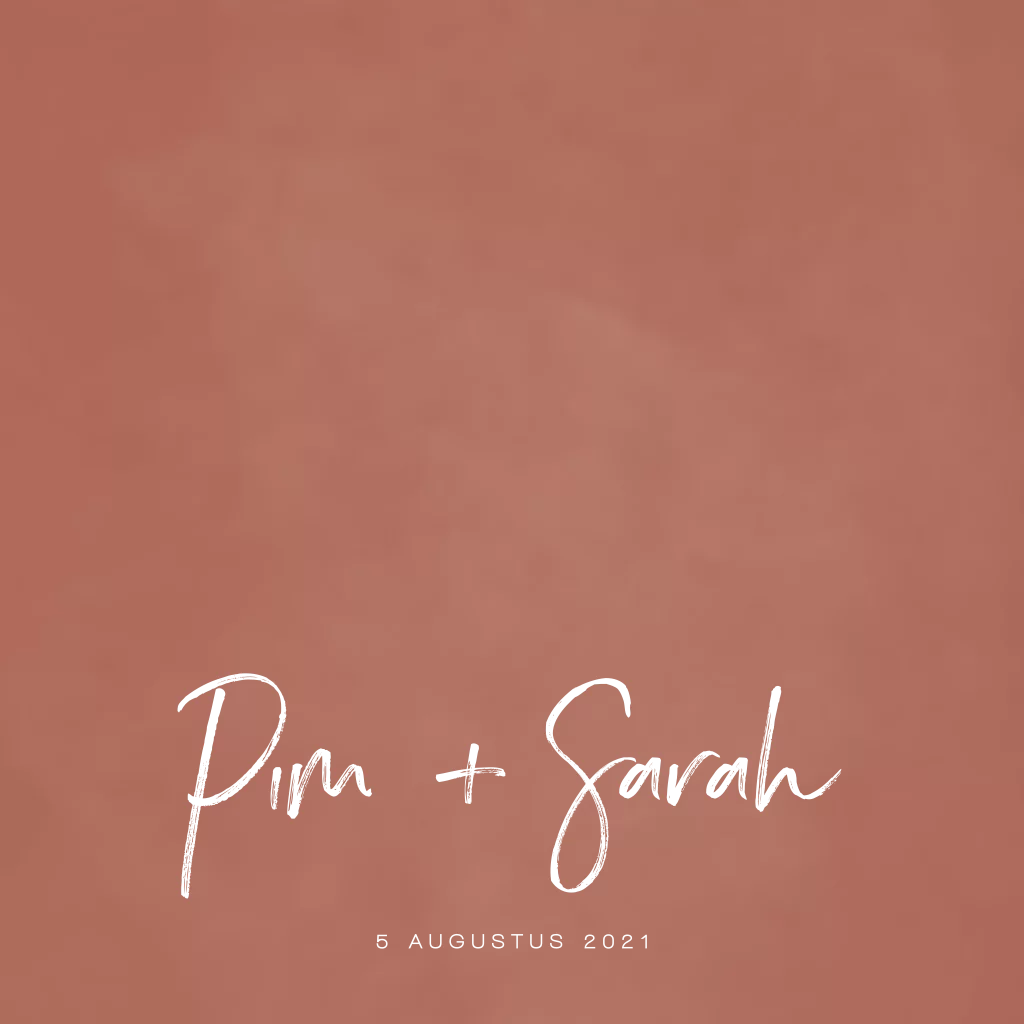 Minimalistische trouwkaart met een rode achtergrond en tekst in goudfolie. Het kaartje maak je extra leuk door een foto met een paperclip eraan vast te maken.