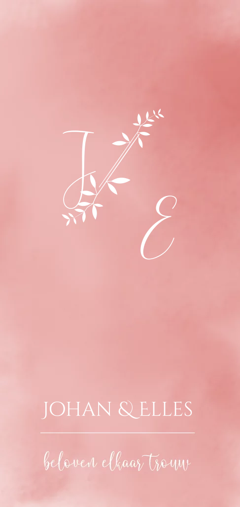 Chique en sierlijk trouwkaartje met een oudroze achtergrond in waterverf en tekst in goudfolie! Leuk met de bijpassende save the date, dagplanning en menukaart voor een complete trouwhuisstijl voor jullie bruiloft.