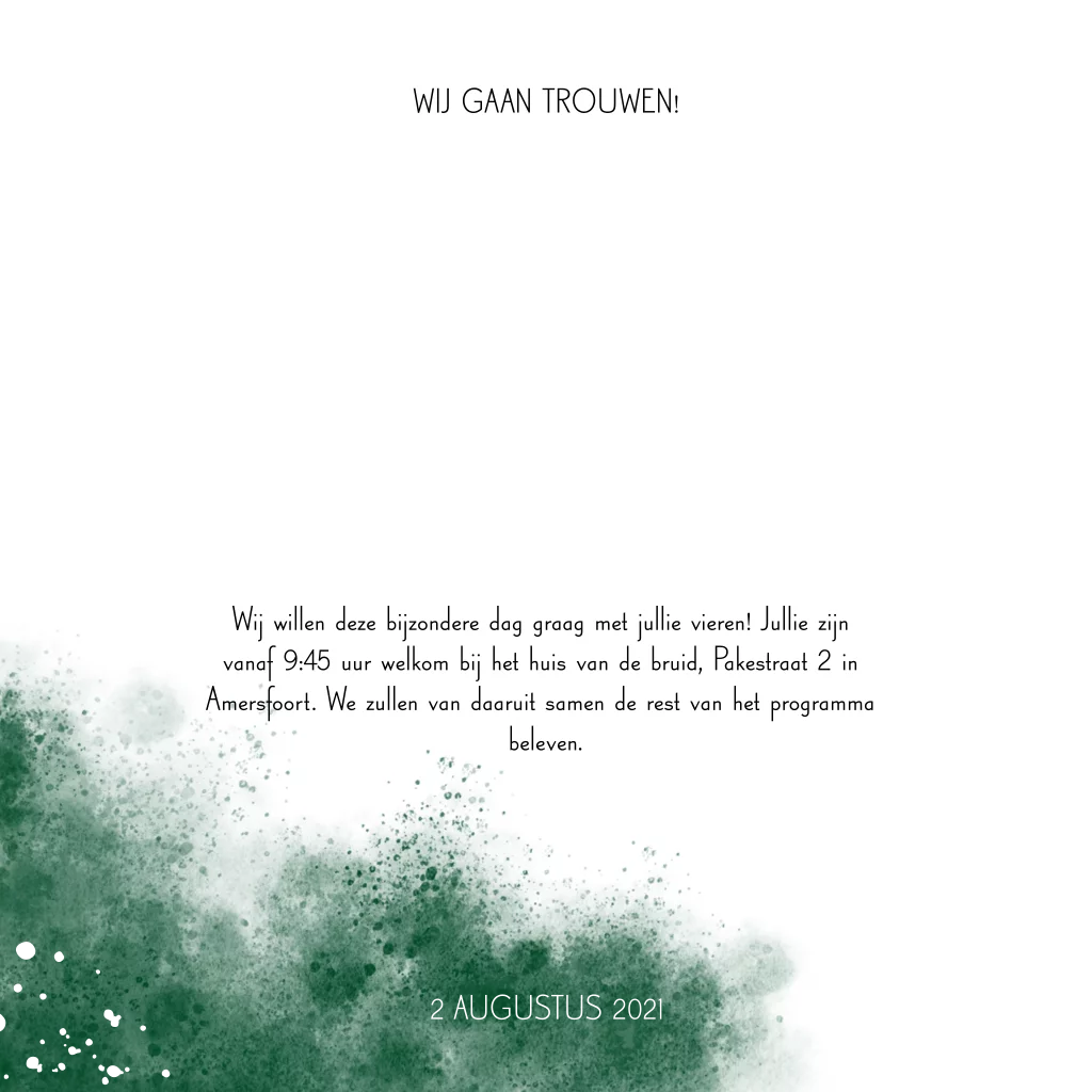 Chique trouwkaartje donkergroen met goudfolie. Leuk in combinatie met de bijpassende menukaartjes en Save the date.