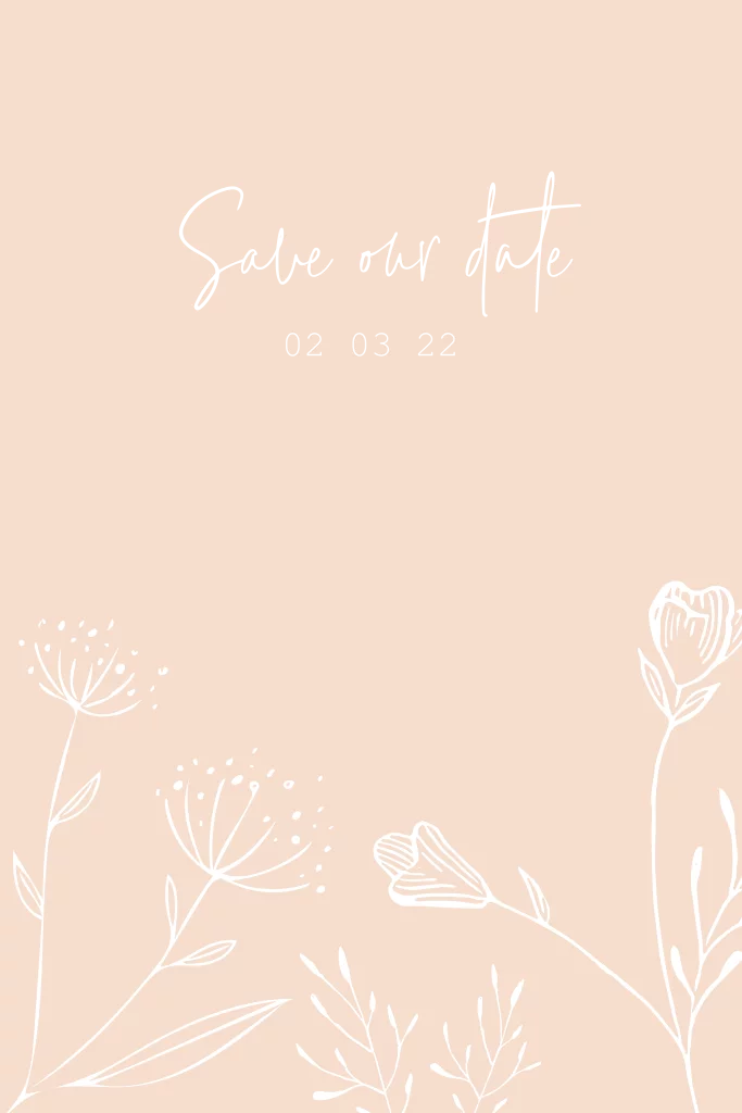 Vrolijke save the date met veldbloemen in rosegoud en wit. Het kaartje is voorzien van prachtige foliedruk in rosegoud.