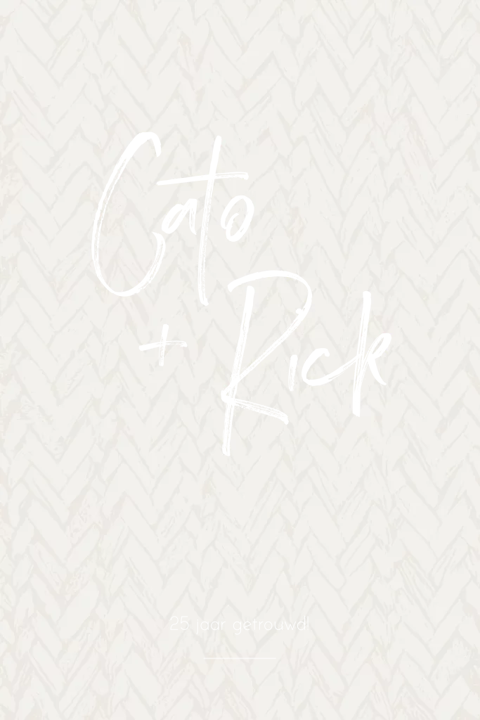 Chique minimalistische jubileumkaart met sierlijk en strak lettertype en een patroon achtergrond. Tekst in goudfolie.