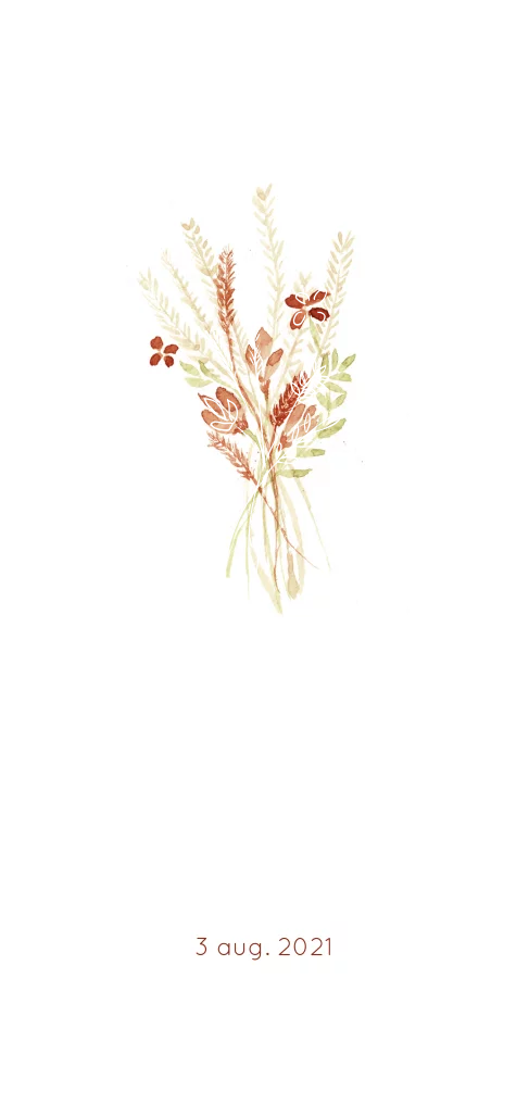 Geboortekaartje voor een meisje met tekst van haar broer en zus. Het geboortekaartje heeft op de voorkant en achterkant een bosje veldbloemen in neutrale kleuren en is voorzien van rosegouden foliedruk.