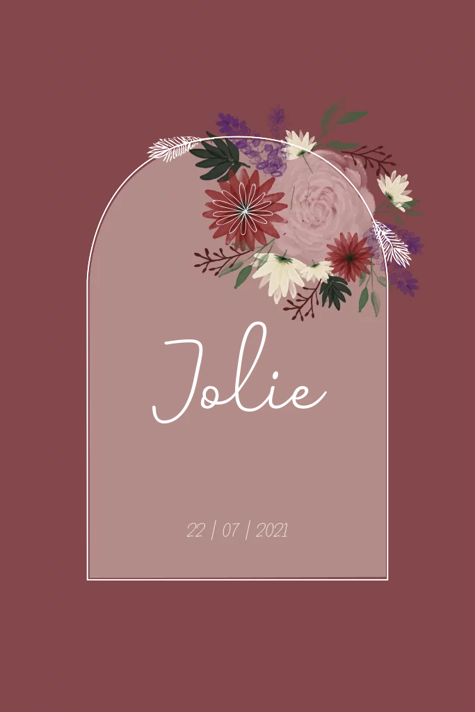Lief geboortekaartje met bloemen en een abstracte vorm