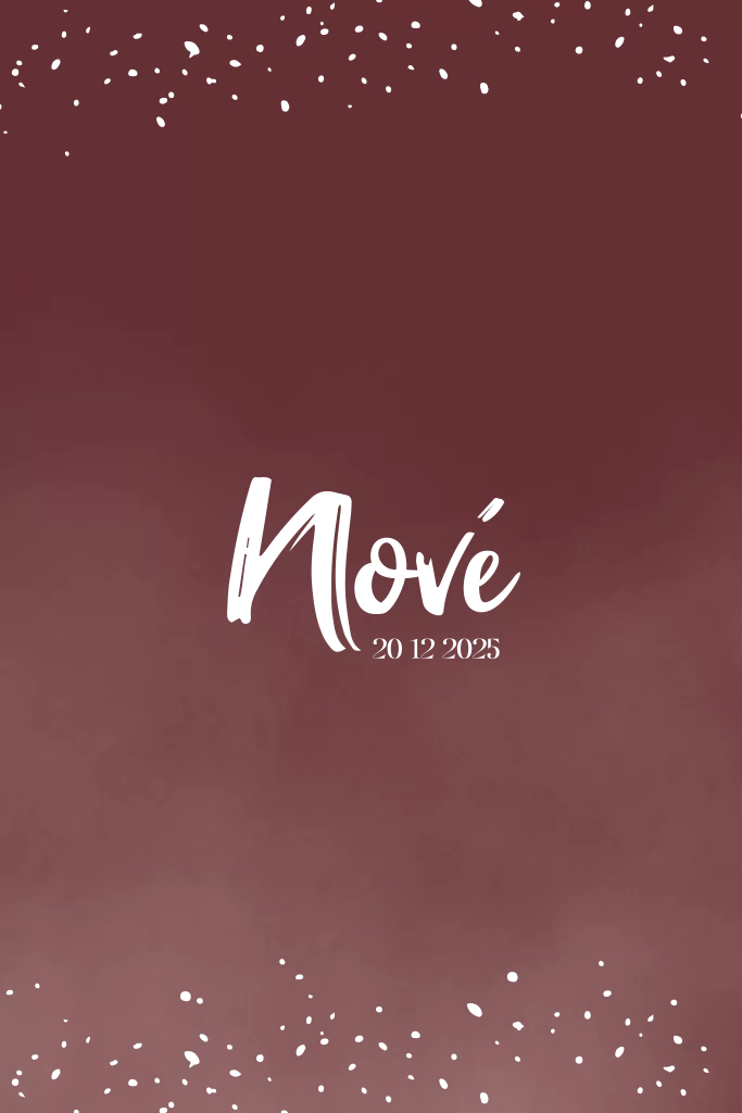 Mooi kerstgeboortekaartje met bordeauxrode achtergrond met goudfolie en spetters.