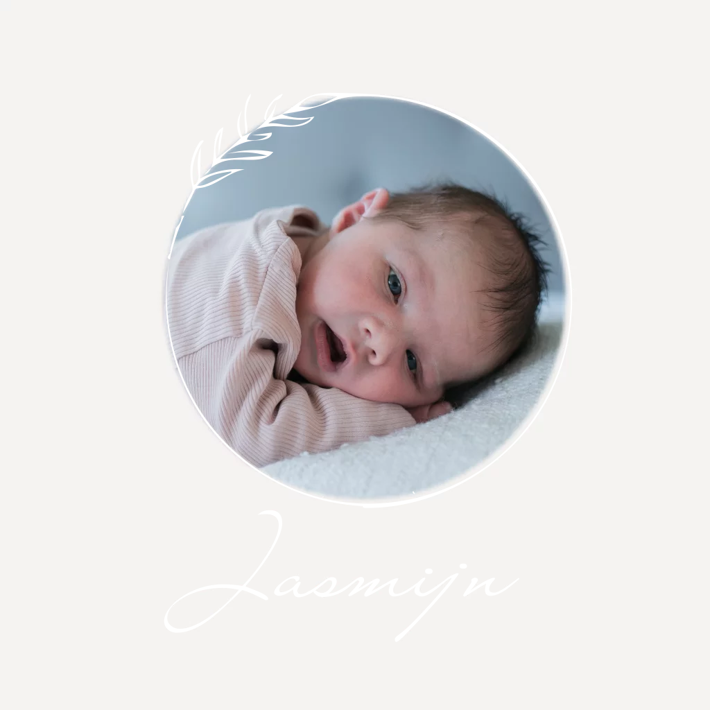 Zelf bewerken: een kerstkaart met ronde foto met een takje en tekst in goudfolie. Prachtige chique kerstkaart!