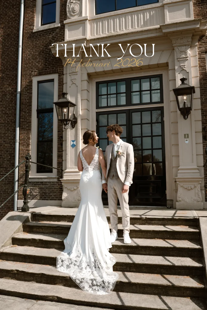 Hoe leuk om je gasten na afloop van jouw bruiloft nog te verrassen met een aandenken in de brievenbus! Deze leuke bedankkaartjes verstuur je na de bruiloft. Bewerk dit kaartje geheel naar wens in de online editor!