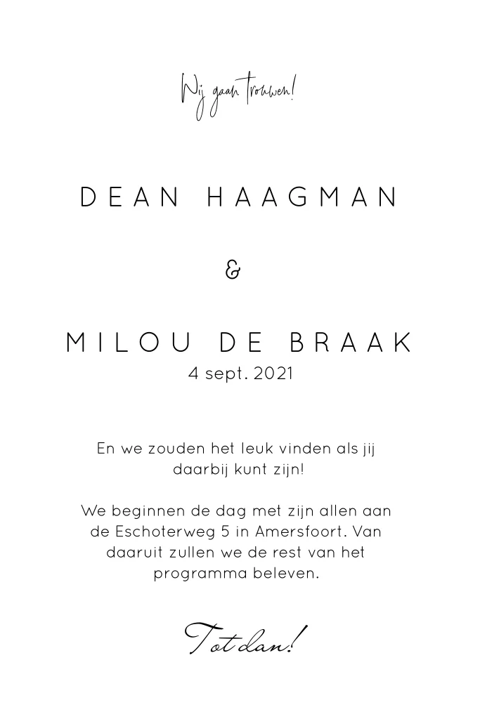 Chique trouwkaartje met goudfolie en trouwlogo