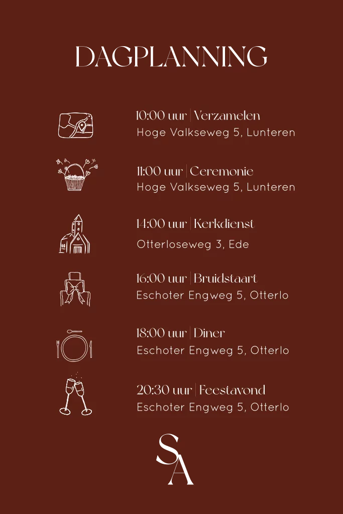 Dagplanning op bordeauxrode achtergrond met goudfolie.