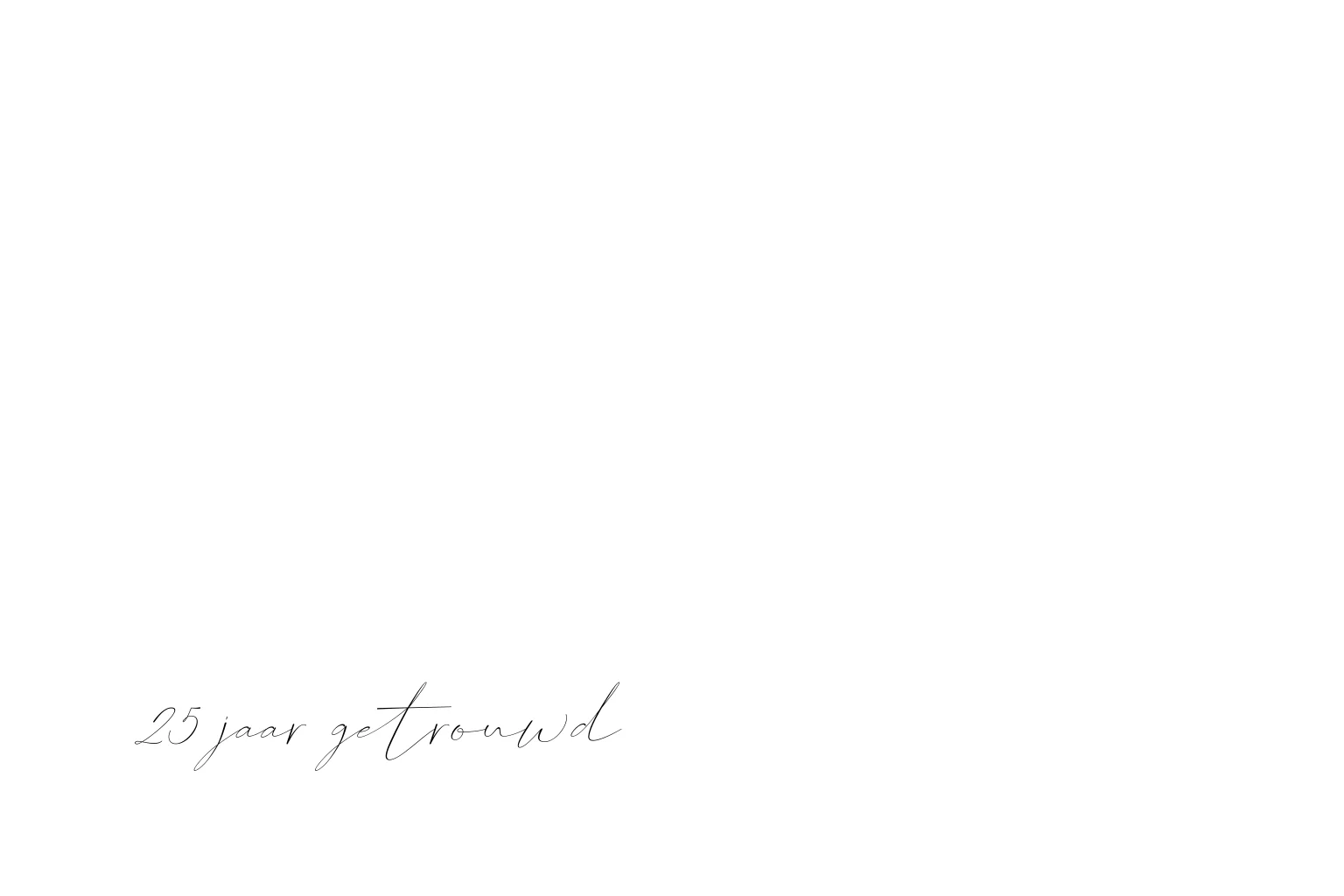 Liggende jubileumkaart met sierlijke en strakke letters in wit met zwart.