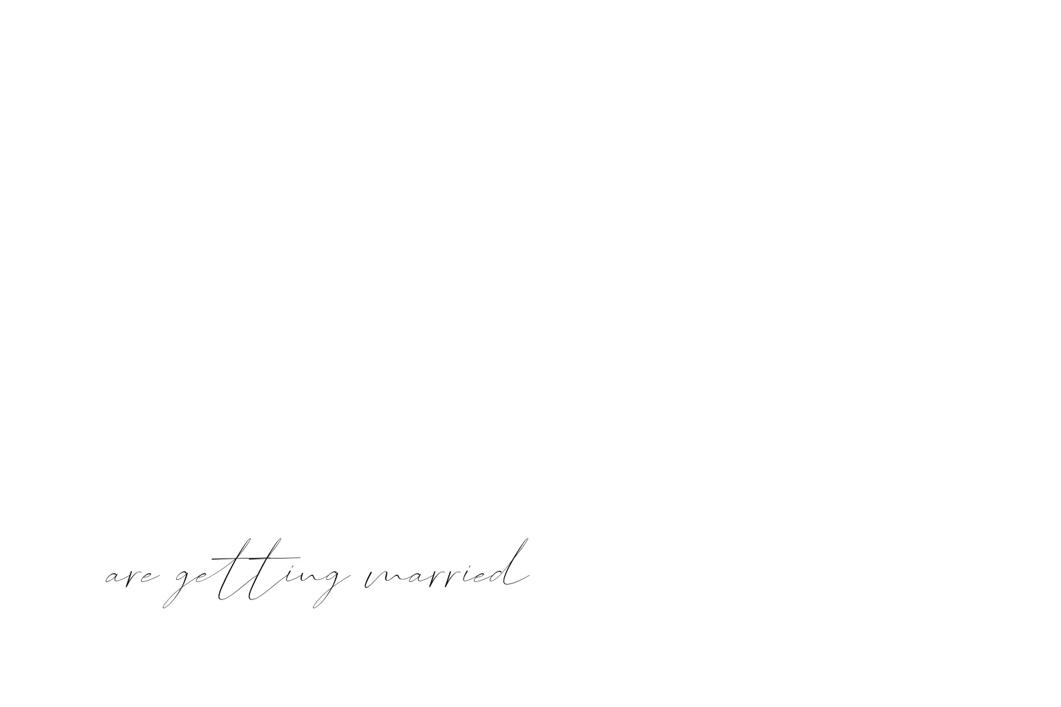 Liggende trouwkaart met sierlijke en strakke letters in wit met zwart.