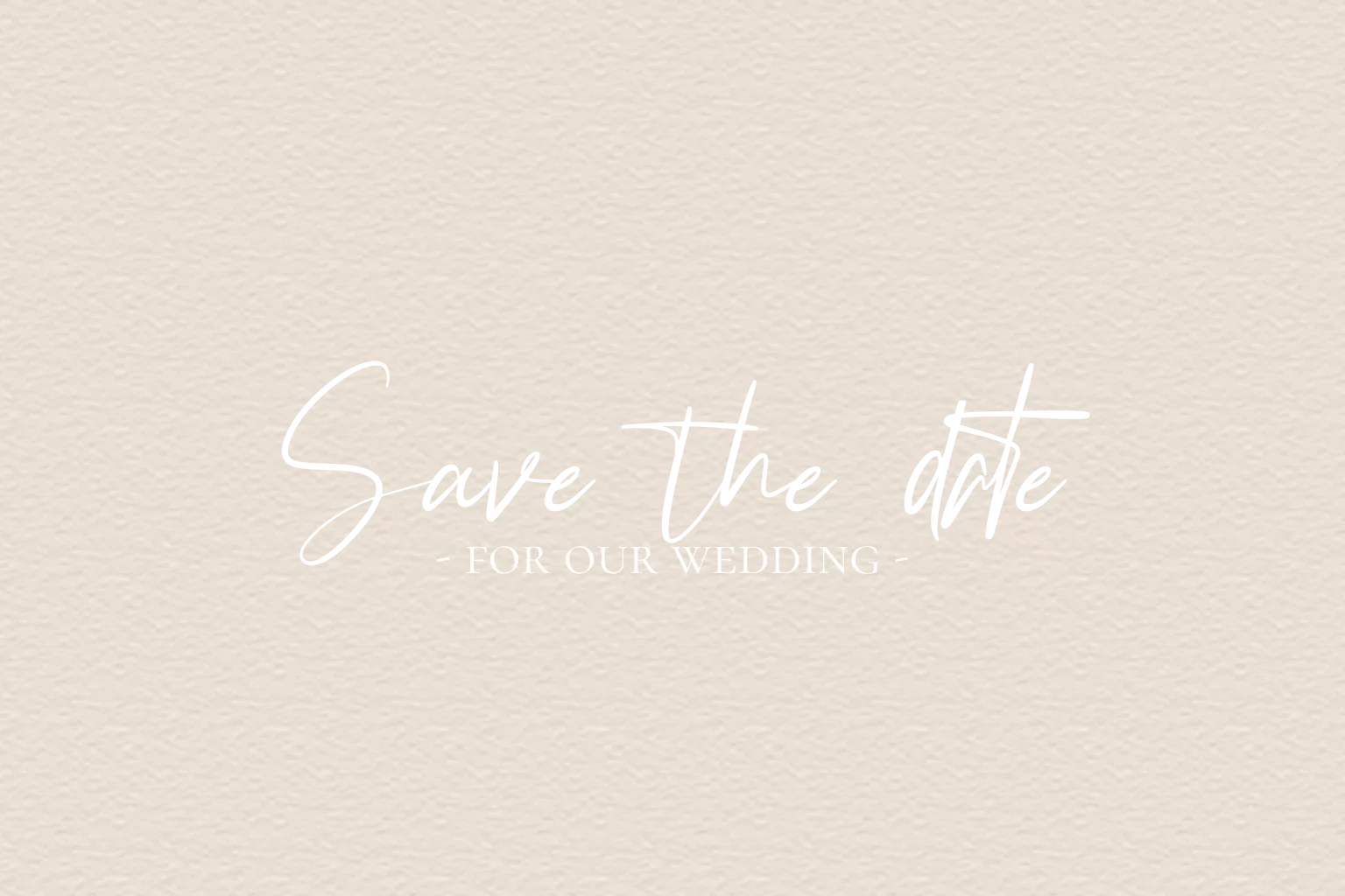 Zandkleur save the date met goudfolie en een structuur achtergrond.