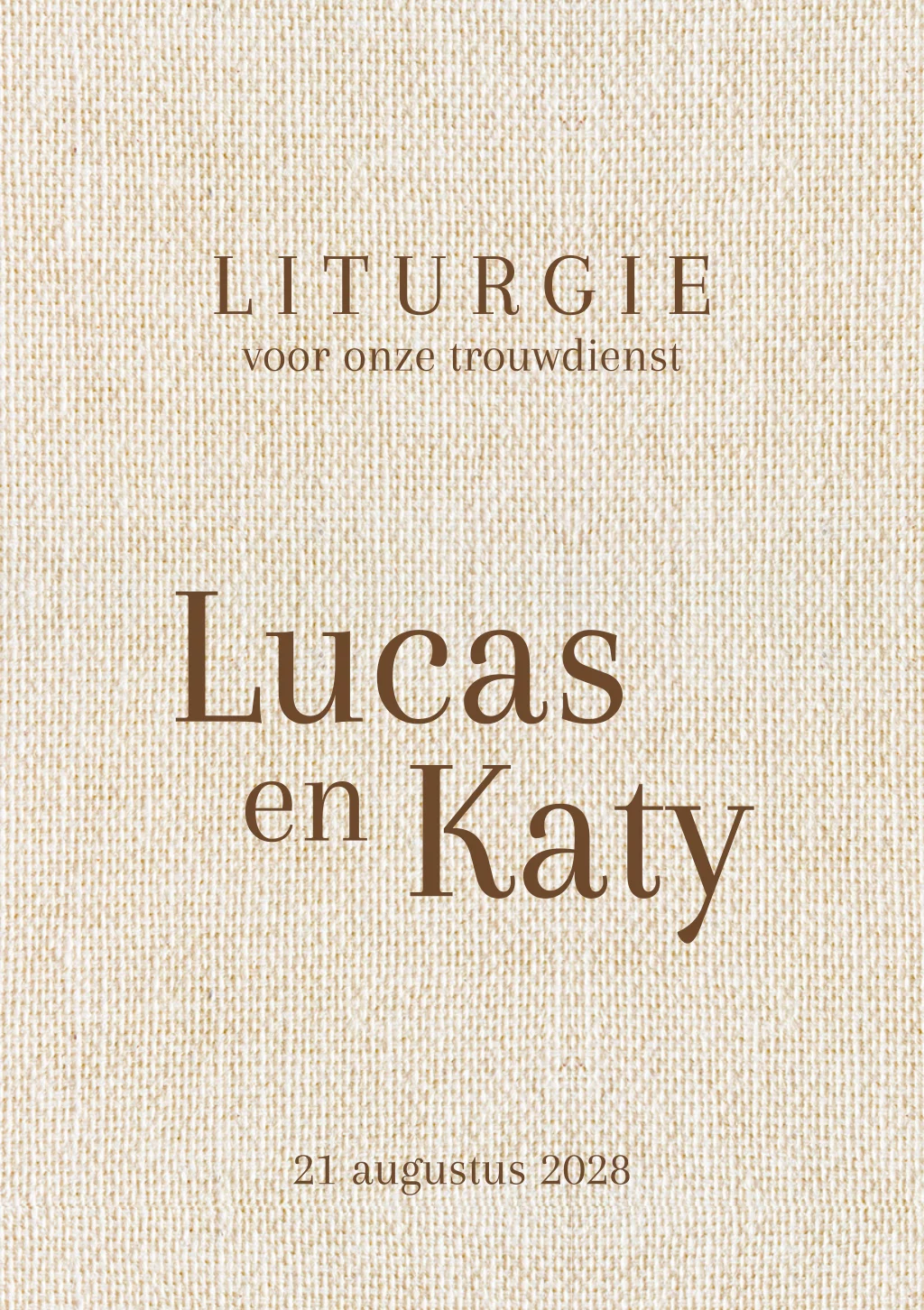 Liturgie met een linnenlook achtergrond en bruine tekst. Je kunt deze liturgie helemaal naar wens aanpassen!