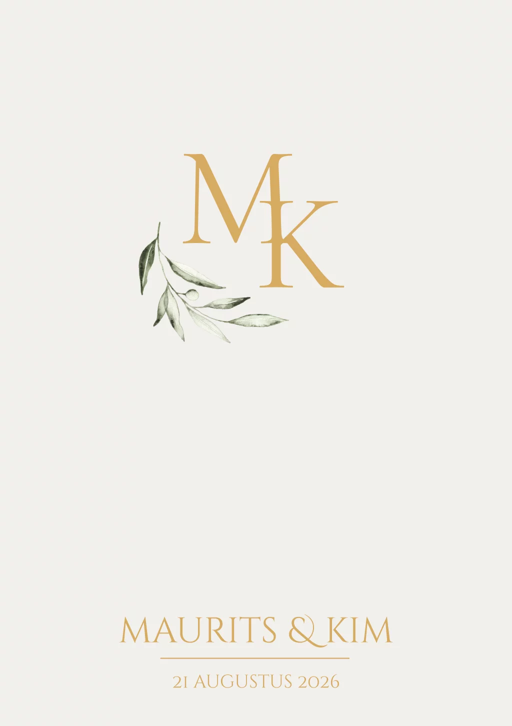 Liturgie met een beige achtergrond en goudfolie tekst. Je kunt deze liturgie helemaal naar wens aanpassen!