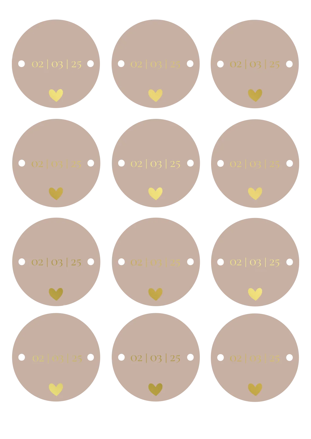 12 mauve ronde labels met gaatjes aan de zijkant. Je kunt dit ontwerp naar wens verwerken en evt. een foto toevoegen.