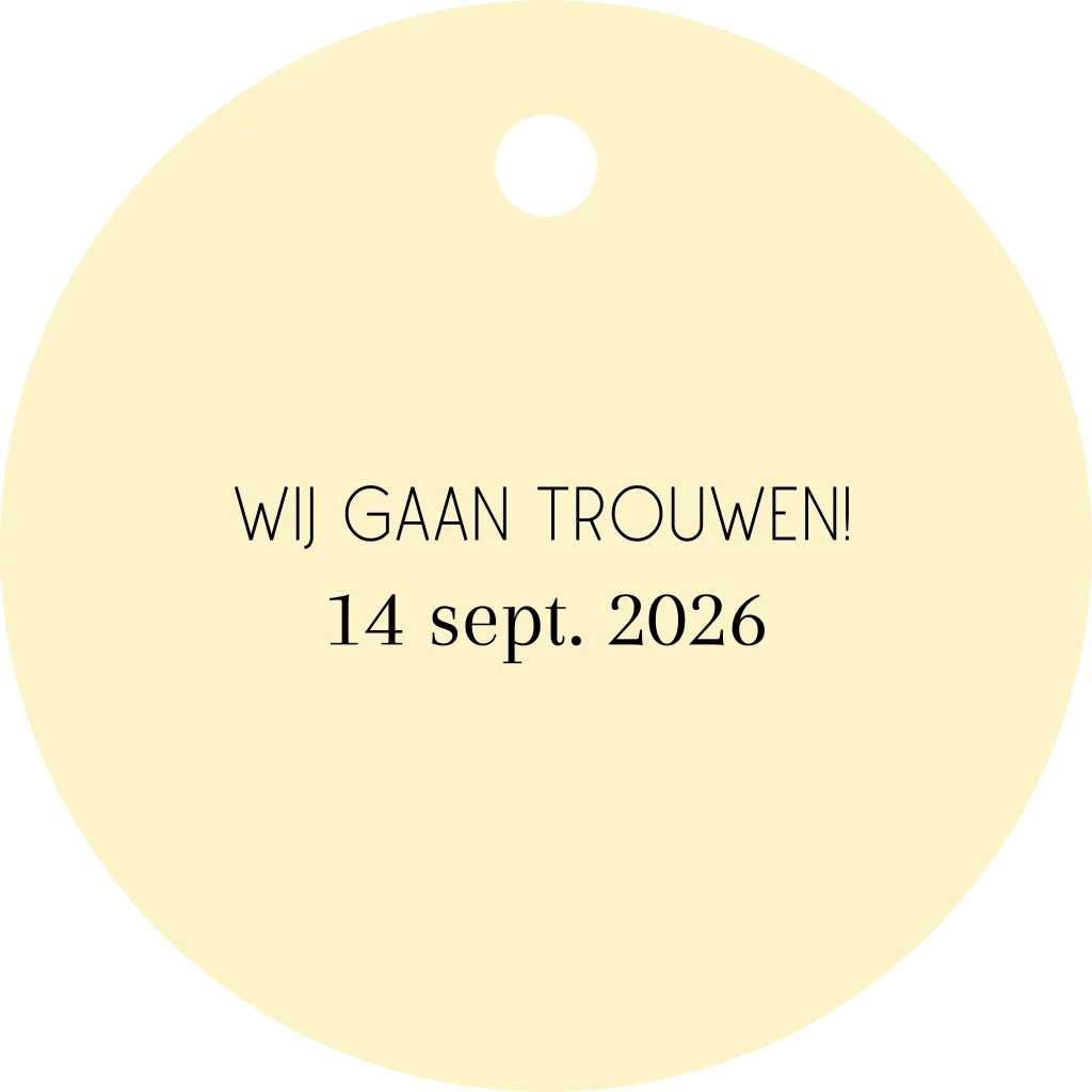 Label 40mm met tekst 'WIJ GAAN TROUWEN' en datum. Bewerk dit label geheel naar wens in de online editor!