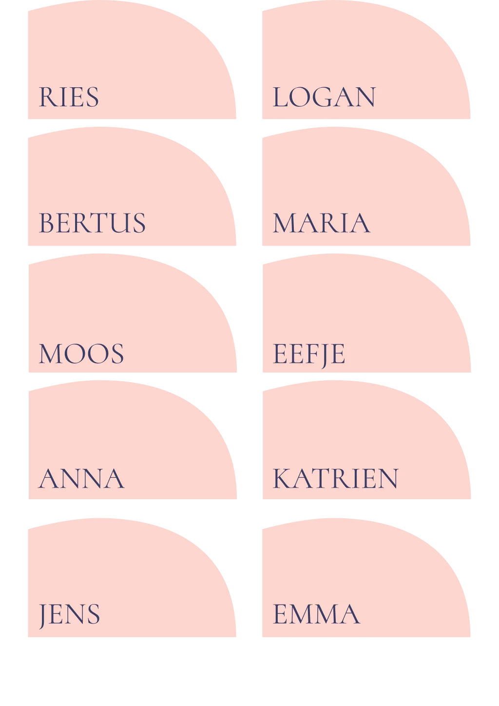 Naamkaartjes roze met blauwe tekst