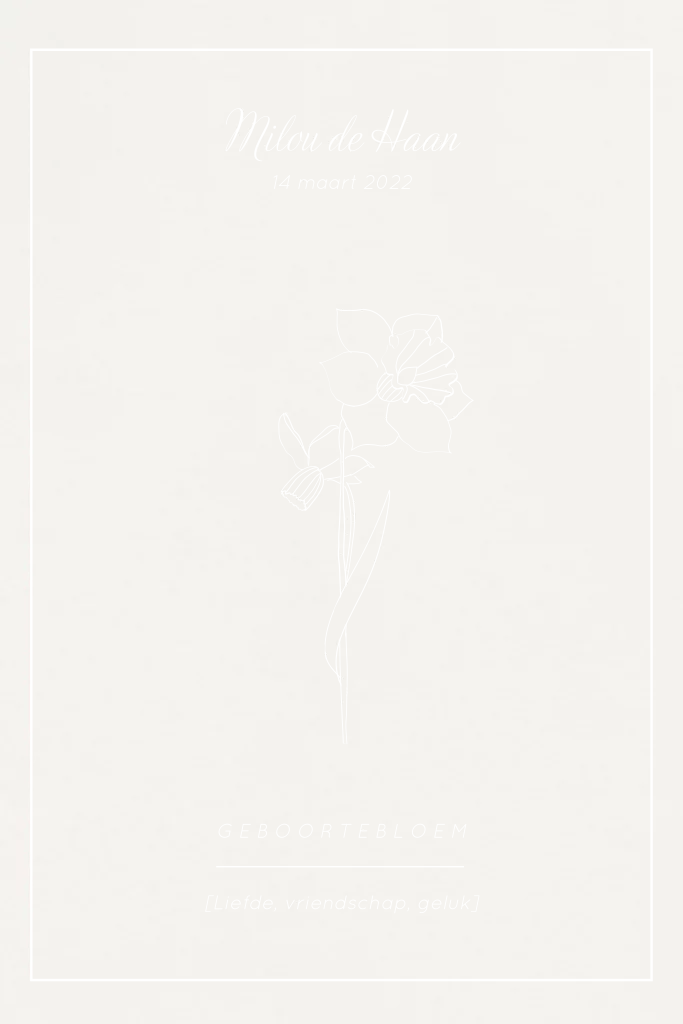 Geboortebloem poster voor de babykamer met folie en de betekenis van de geboortebloem van maart.