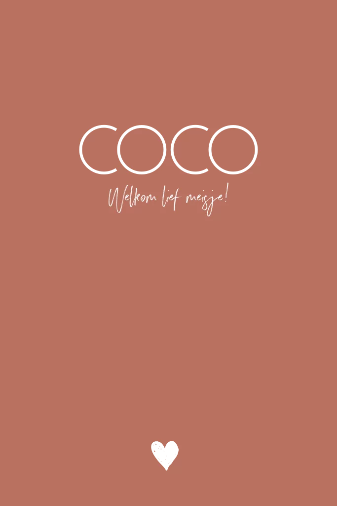 Mooie minimalistische poster in de look van een geboortekaartje. Met roestkleur achtergrond en de tekst in goudkleur.