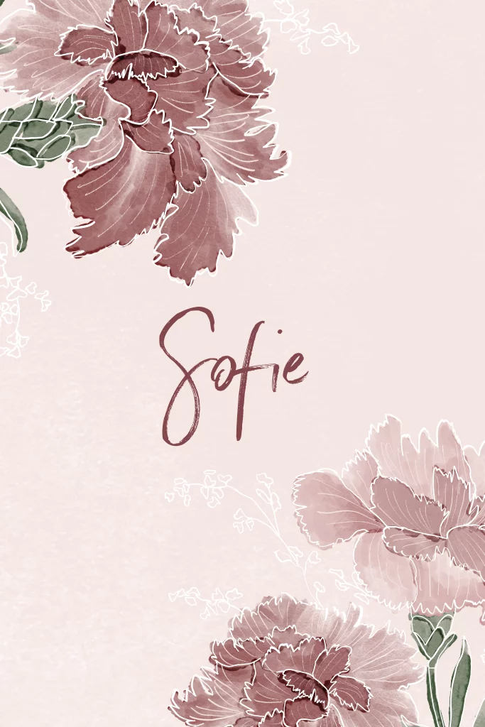 Mooie poster voor de babykamer met de meisjesnaam sofie en de geboortebloem van januari: de aster. Je kunt deze poster in combinatie met een kaartje bestellen, maar ook alleen!