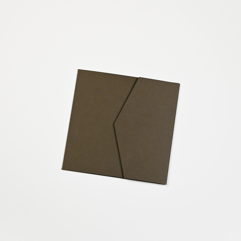 Chocolate Brown pocketfold voor vierkante kaarten van 13x13 cm. Formaat pocketfold: 14,5x14,5 cm. Kies voor envelopformaat 16x16 cm.