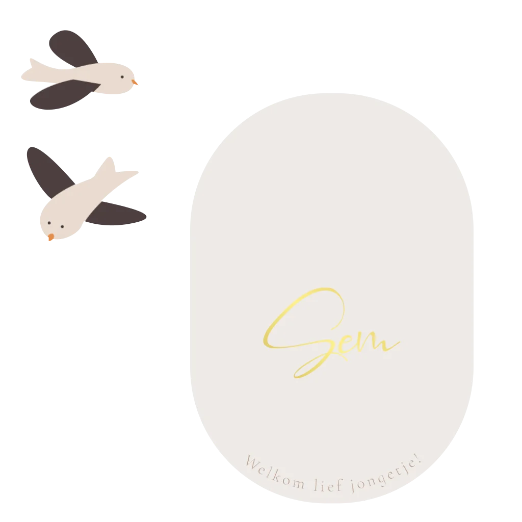 Lief jongens geboortekaartje in natuurlijke kleuren met goudfolie en vogeltjes die je er los op kan plakken.