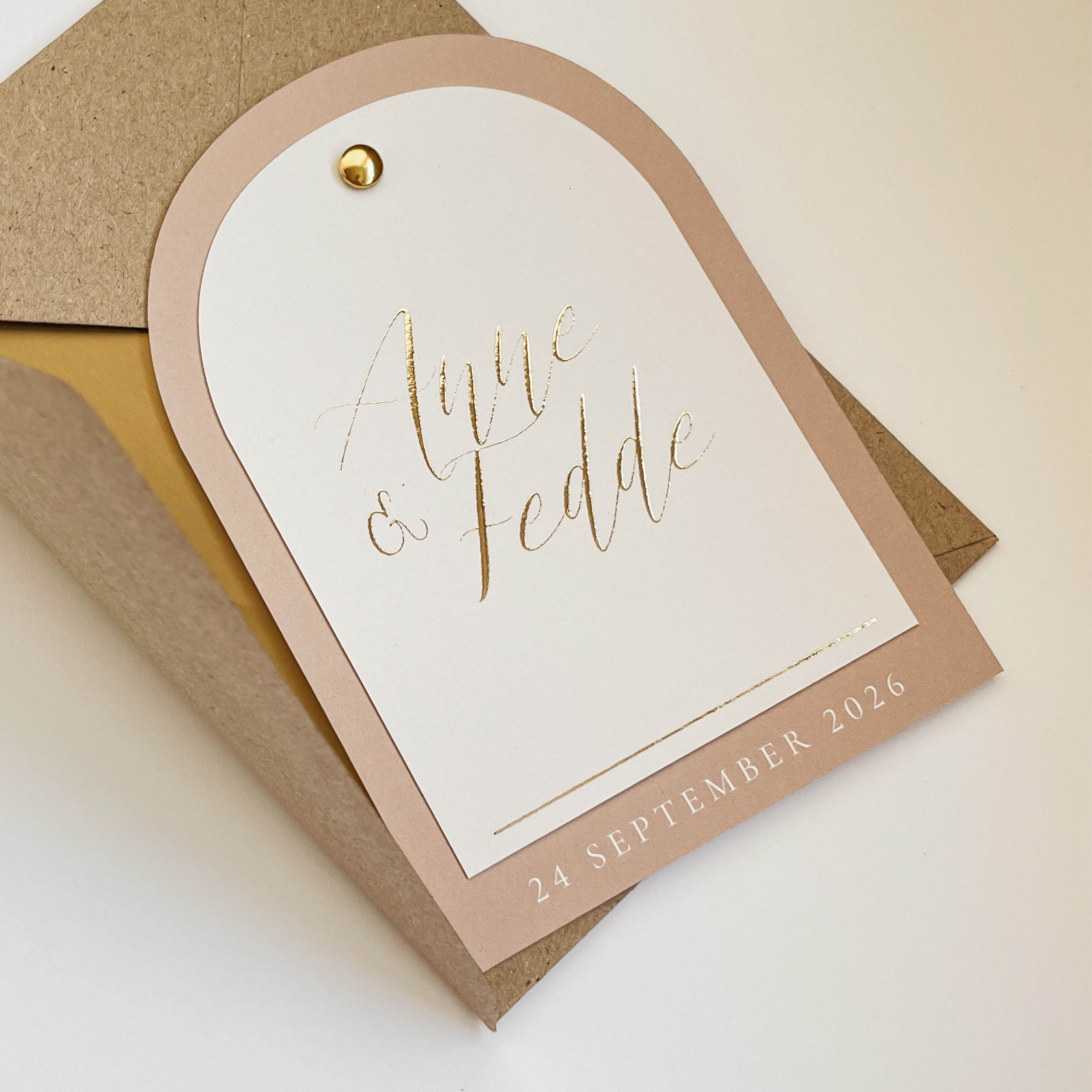 Kaartenset trouwkaart met goudfolie in natuurlijke kleuren