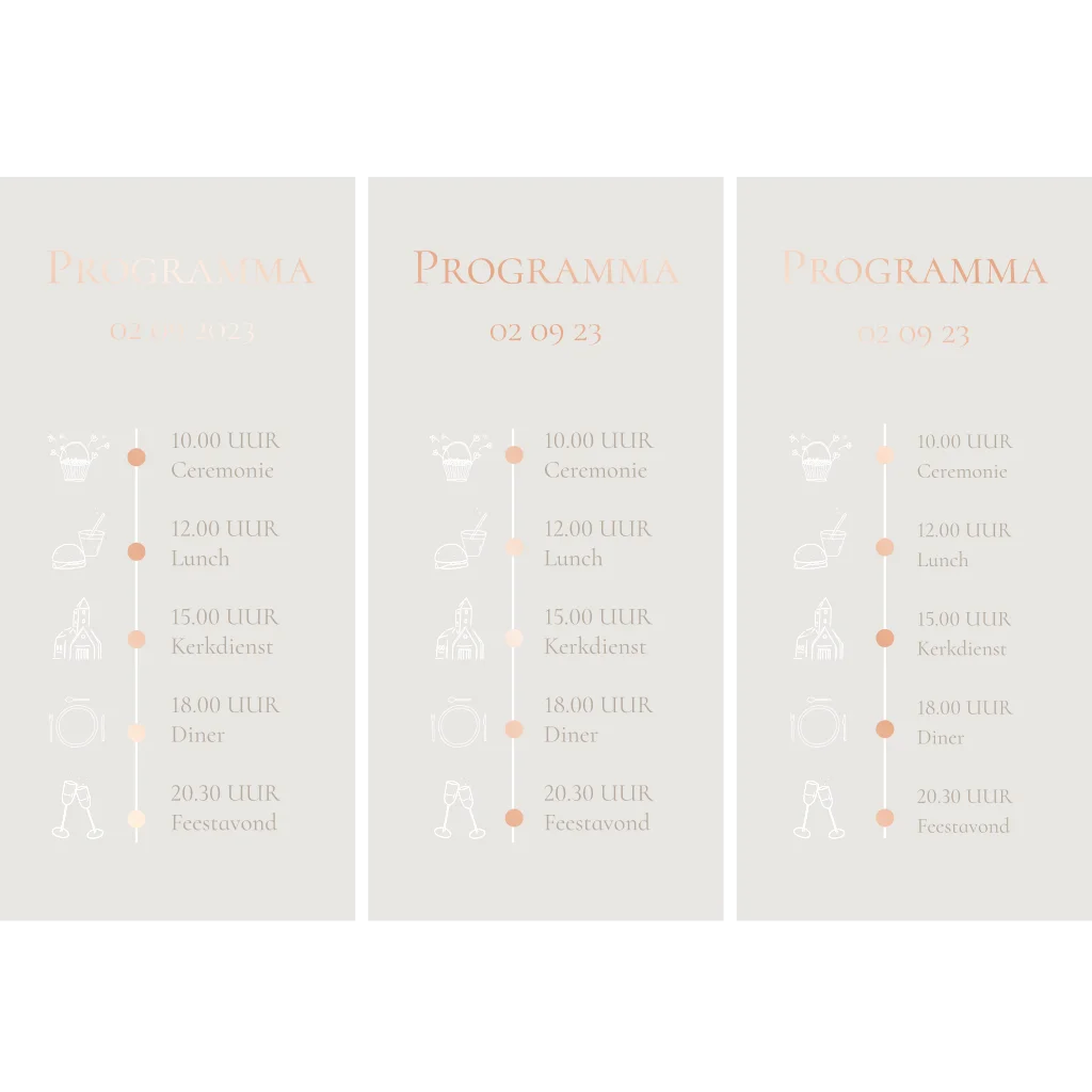 Drie dagplanningen in de kleur lichtgrijs/zand met folie. Pas deze naar wens aan in de online editor.