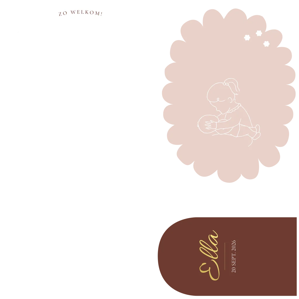 Prachtige geboortekaart met een klein kaartje in bloemvorm en een boogvorm. Je kunt deze kaart helemaal naar wens aanpassen in de online editor. Let op: De kaart wordt geleverd zonder paperclips. Je kunt het lint bestellen via www.lindesigned.nl/paperclips