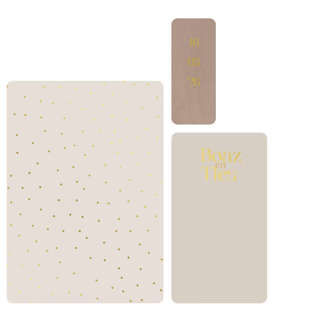 Tweeling geboortekaart set feestelijk met gouden stippen