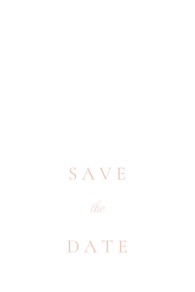 Minimalistische save the date met een witte achtergrond en roze tekst. Bij dit kaartje is ook een bijpassend trouwkaartje en een complete trouwhuisstijl te vinden!