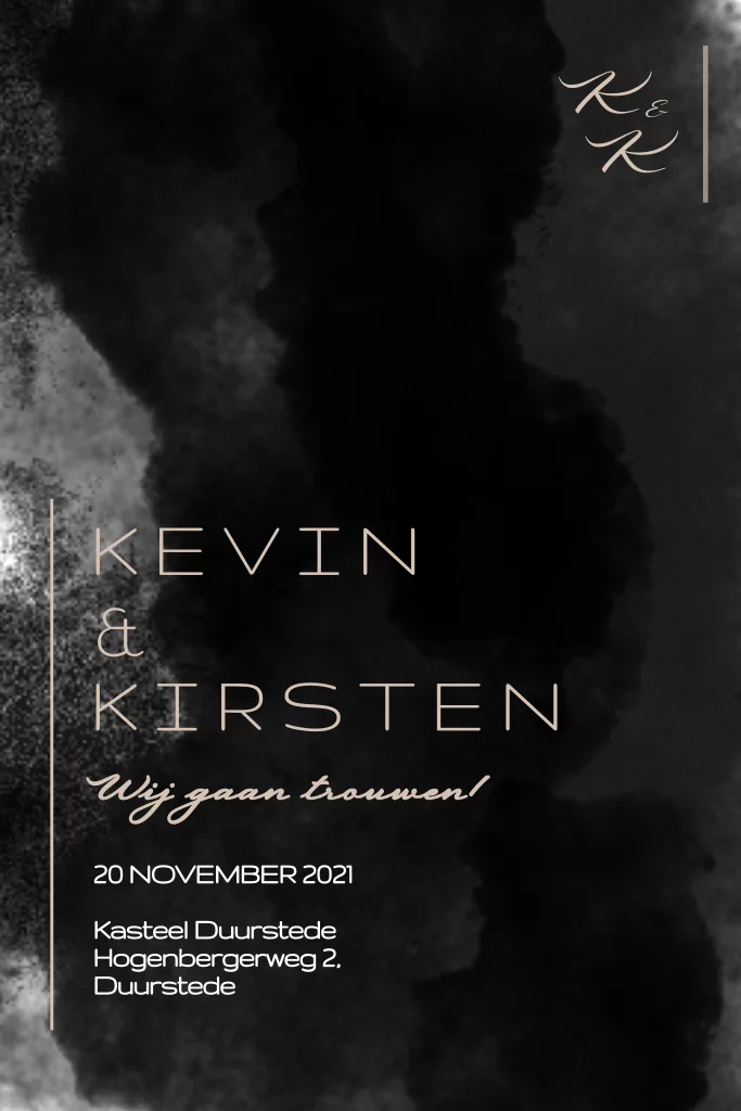 Minimalistisch trouwkaartje met zwarte achtergrond Het perfecte trouwkaartje voor een minimalistische bruiloft!