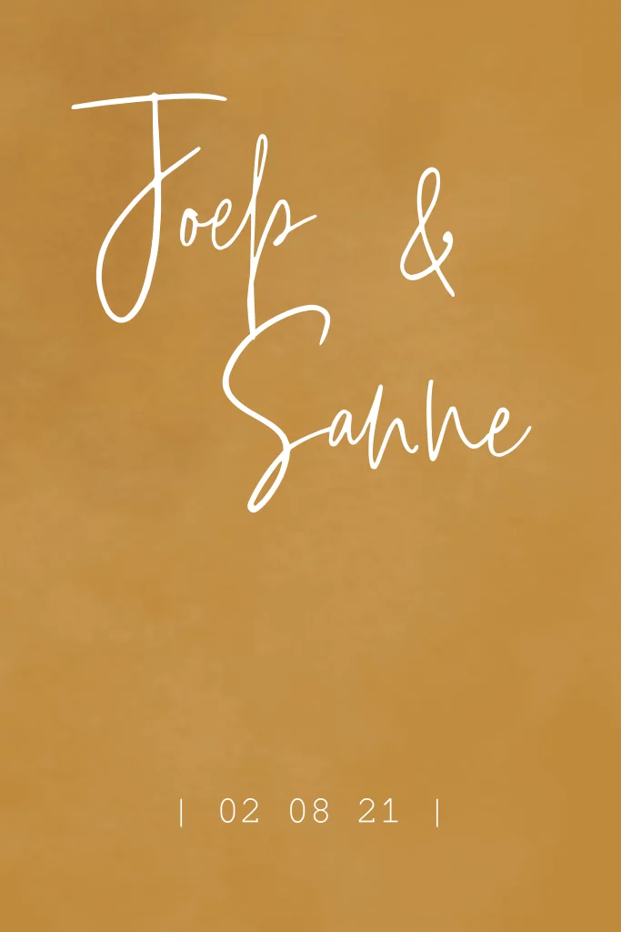 Mooi trouwkaartje met camel als achtergrondkleur en een minimalistische uitstraling.