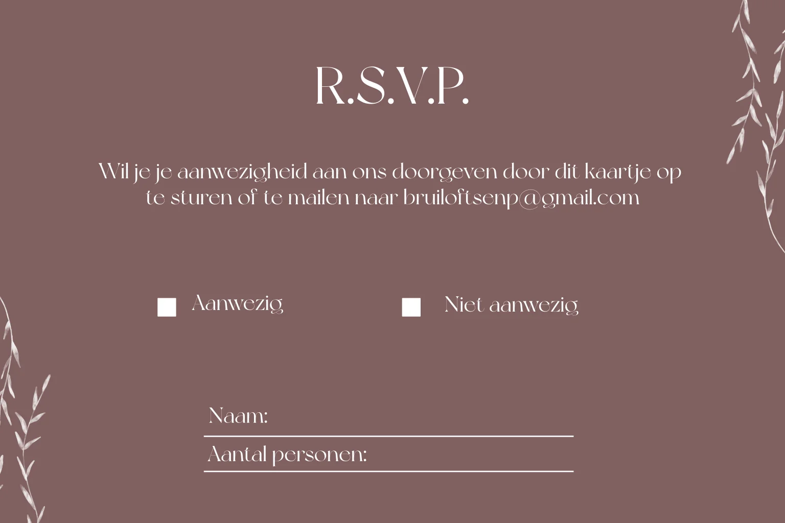 Mooi RSVP kaartje in mauve / wit. Bestel deze op formaat 5x8 voor een mooi subtiel kaartje!