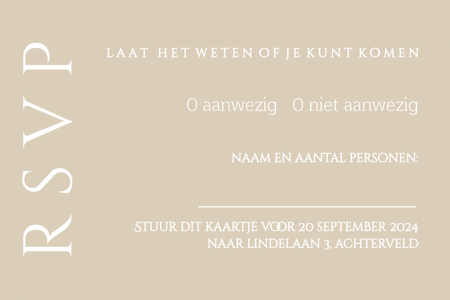 RSVP kaartje zandkleur