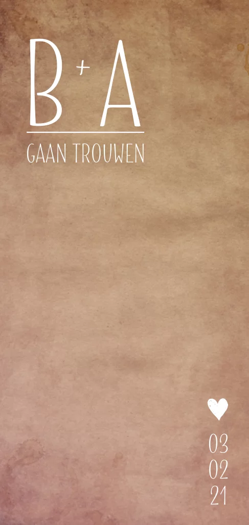 Neutraal trouwkaartje in aardse tinten met zwarte en witte tekst. Leuk met een mooie foto van jullie die je vastmaakt met een paperclip.